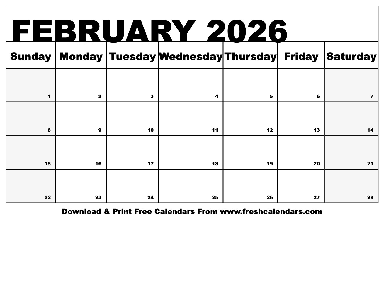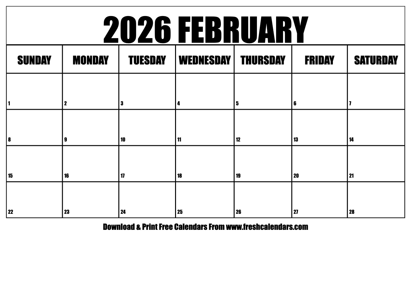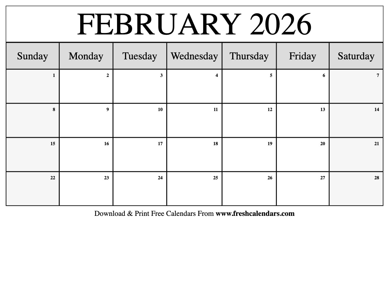If you are looking for a free printable February 2026 Calendar, you will find a lot of design alternatives on our page. You can choose which design you want and you can download it to your PC or phone as PDF or JPG format. After downloading the file, you should use a kind of design tool like Photoshop. You can fill the blank days for your printable blank February 2026 Calendar, after completing your plans, you can print your completed calendar. You can use it for different purposes like business, family or school tasks in many countries of the world. It's enough to use Gregorian Calendar in your country. At the same time, it's easy to find next and previous months' calendars on the page, you can use them for future and past planning purposes. Planning will be so easy with the printable calendars. You can find many calendar alternatives like monthly, weekly or yearly in order to use for different planning purposes. It's enough to browse all printable February 2026 templates on the page and download it in seconds.