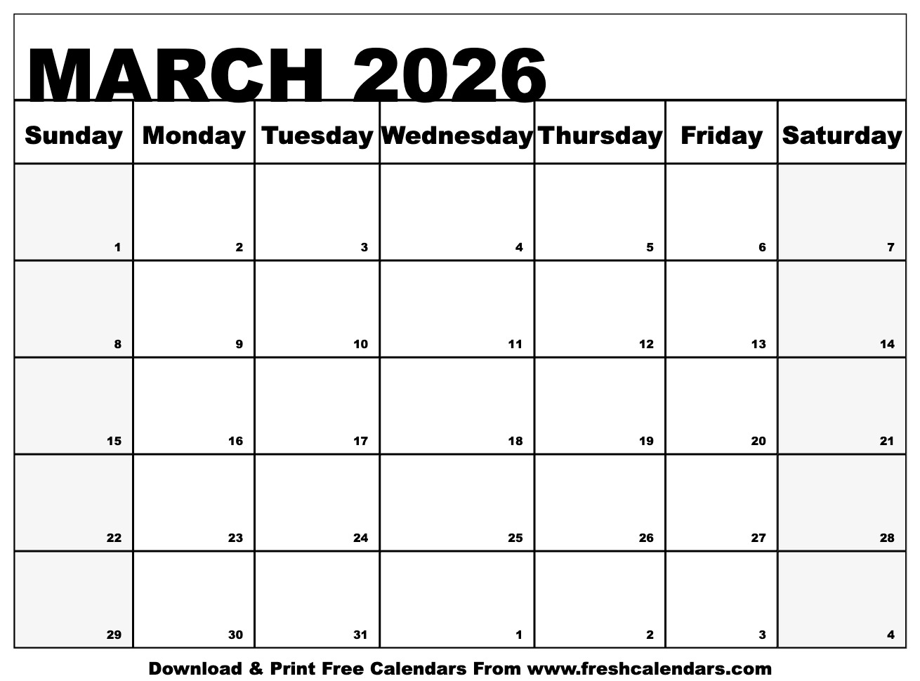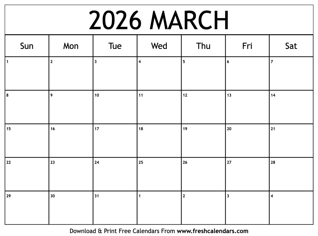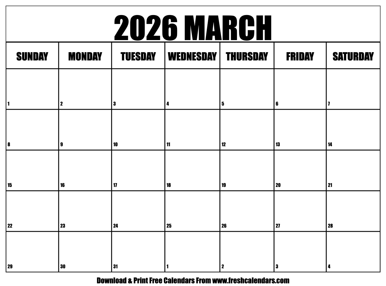 March 2026 calendar printable is definitely one of the best choices you can adopt. This specific printable is sure to ease most of the planning burdens that are on the horizon of the coming month. The template is extremely easy to look at yet it maintains a very basic outlook in terms of layout and composition. The Blank Printable March 2026 Calendars are also extremely user-friendly, with each and every section provided with particular relevance attached to it.